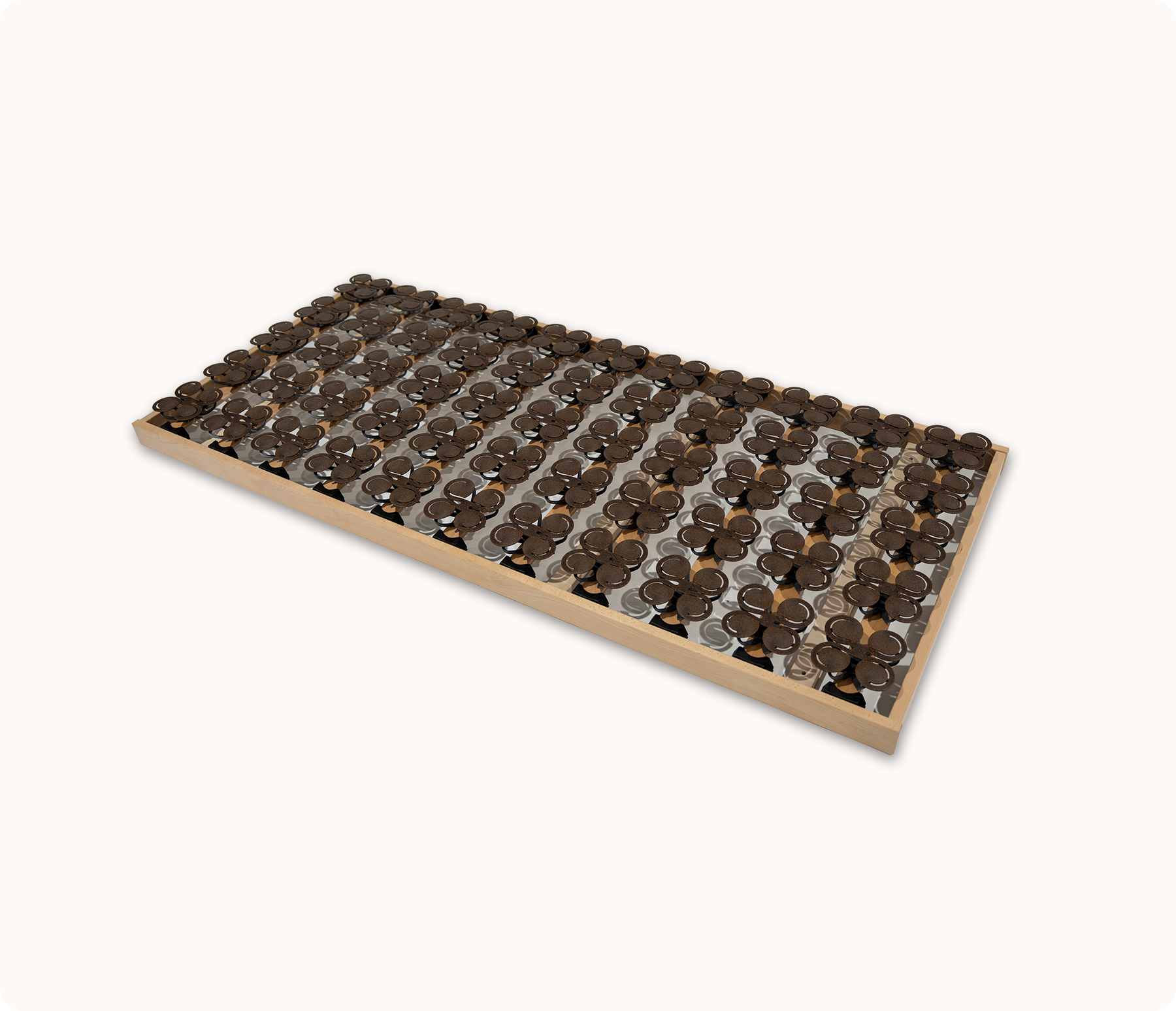 De Orthoflex vaste lattenbodem combineert puur vakmanschap met ergonomische precisie. De duurzame plaatveren uit houtvezel passen zich soepel aan je lichaam aan, voor een perfecte balans tussen steun en comfort. Volledig metaalvrij en voorzien van een zachte schoudercomfortzone, voor een gezonde, natuurlijke nachtrust. Rust, stevigheid en harmonie — precies zoals slapen bedoeld is.