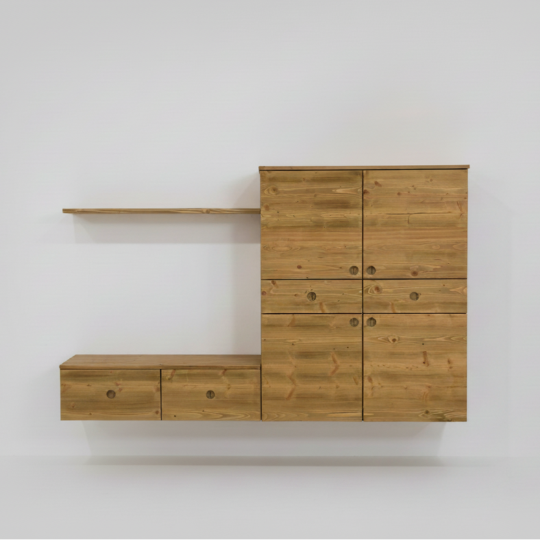 TV-meubel / wandkast in massief Europees vuren, geborsteld en gekleurd, voor een rustieke uitstraling.