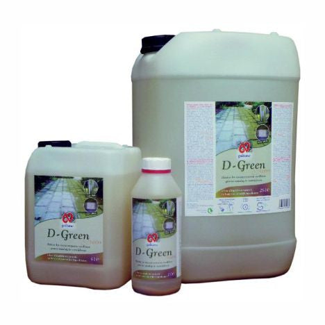 D-Green bevat geen biocide, chloor of ammoniak (die de steen aantasten). Met dit product kunnen algen worden verwijderd, korstmos, schimmels en andere biologische aantastingen op steen, betonnen klinkers, minerale gevels, baksteen, arduinsteen, tuinmuren, standbeelden, grafzerken, bloempotten in terracotta, tuinhout, houten en stenen terrassen.