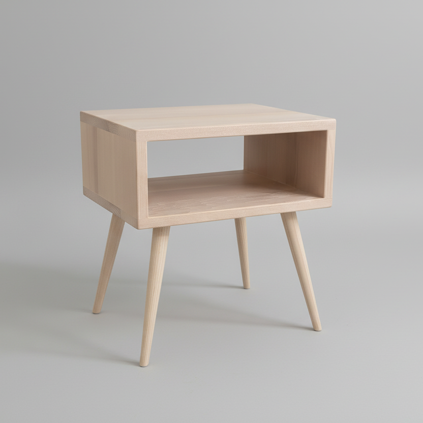 Set van 2 nachtkastjes in massieve, Europese es met FSC label, wit geölied, zonder formaldehyde.